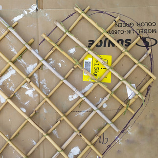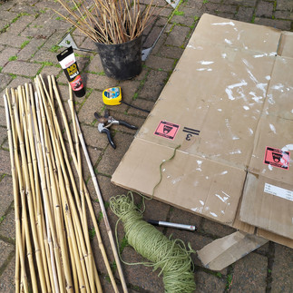 Once you are happy with your shape, it's time to create the frame. Overlap the canes as in the image and tie with string at each join. Line the canes up to your template as you go and cut the canes to shape.